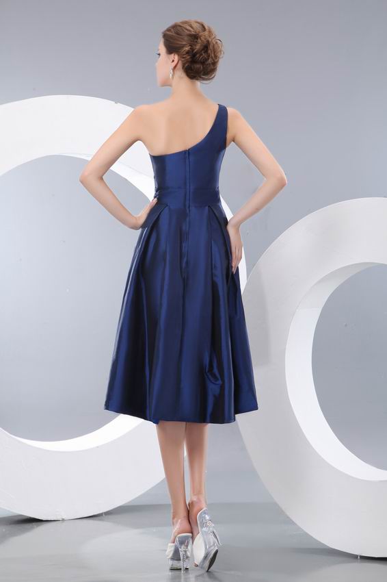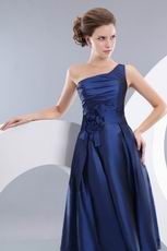 Modest Dark Blue Homecoming Dress With One Shoulder Skirt