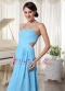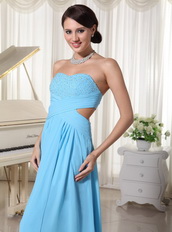 Aqua Blue High Slit Decorate Bust Prom Dress For Custom Made Inexpensive