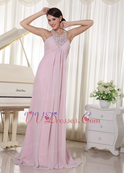 Baby Pink Chiffon Prom Dress With Halter Top Long Skirt Inexpensive
