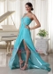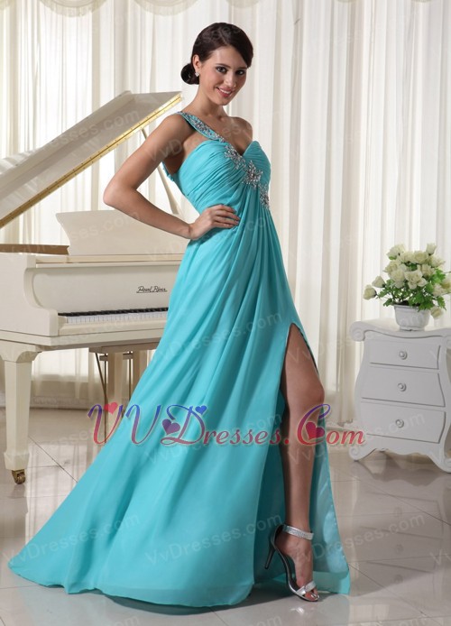 Beaded One Shoulder Turqupise Blue Side Split Dress For Prom Wear Inexpensive