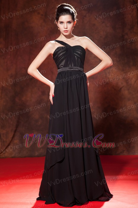 Black One Shoulder Floor-length Chiffon Prom Dresses 2014 Designers Inexpensive