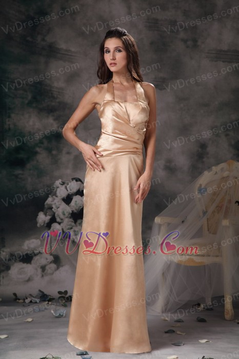 Champagne Column Prom Dress With Halter Floor-length Skirt Inexpensive