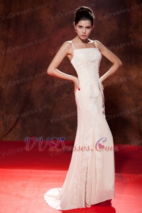 Champagne Mermaid Spaghetti Straps Prom Dress With Appliques Inexpensive