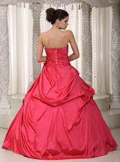 Coral Red Strapless A-line Long Puffy Dress For Prom Wear Inexpensive