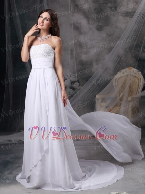 Empire Waist Long White Chiffon Prom Celebrity Dress By Designer Inexpensive