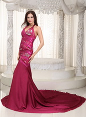 Fuchsia Chapel Train Prom Dress With Halter Top Skirt 2014 Inexpensive
