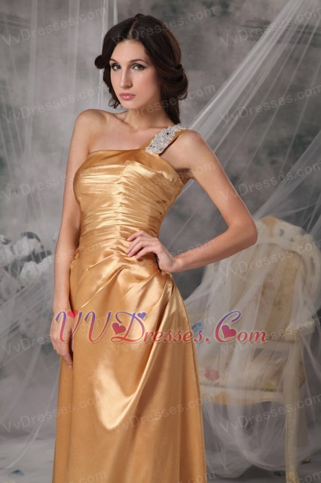 Inexpensive One Shoulder Long Gold Prom Dress For Lady Inexpensive
