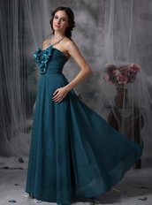 Peacock Blue Strapless Lady Wear Prom Chiffon Dress Inexpensive