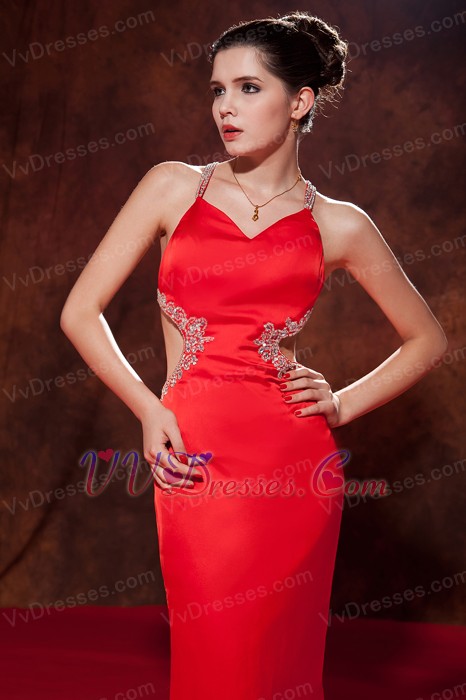 Red Chiffon Criss-Cross Back Straps Dress For Celebrity Wear Inexpensive