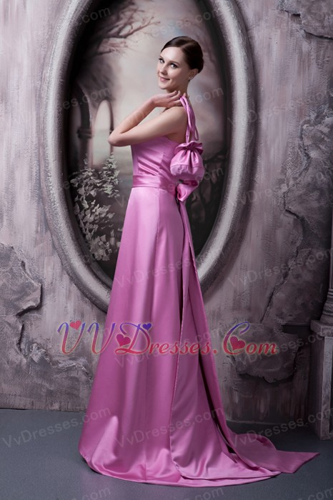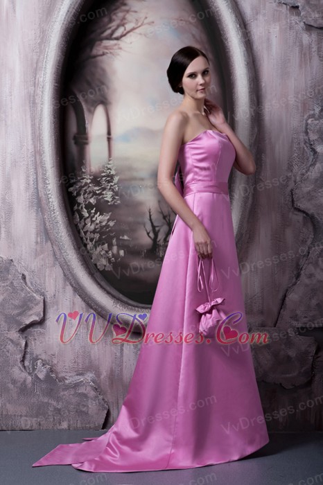 Rose Pink Strapless A-line Silhouette Bowknot Back Simple Prom Dress Inexpensive