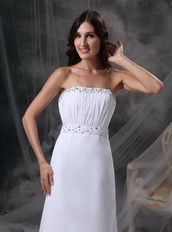 White Chiffon Top Seller Prom Dress With Silver Beading Inexpensive