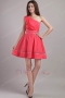 A-line One Shoulder Skirt Designer Coral Red Short Prom Dress