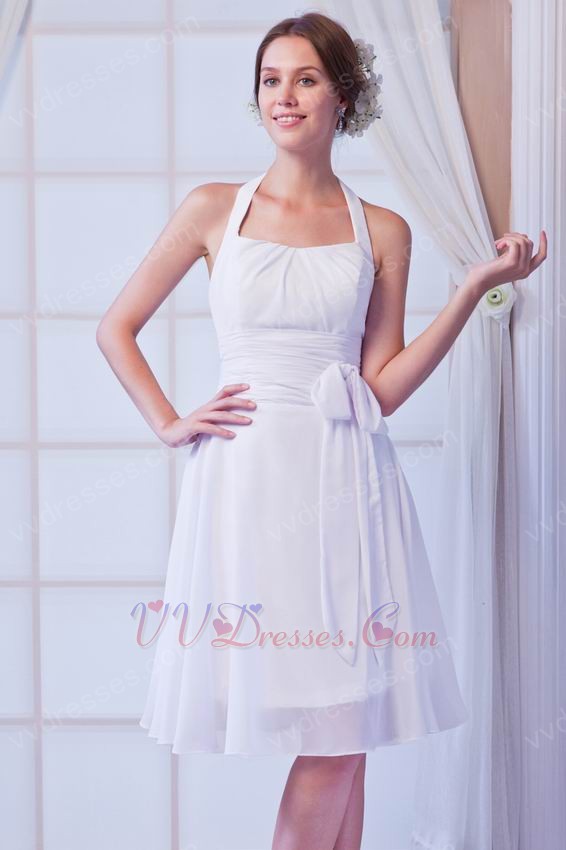 Cheap Halter A-line Knee Length Skirt With Bowknot Prom Dress