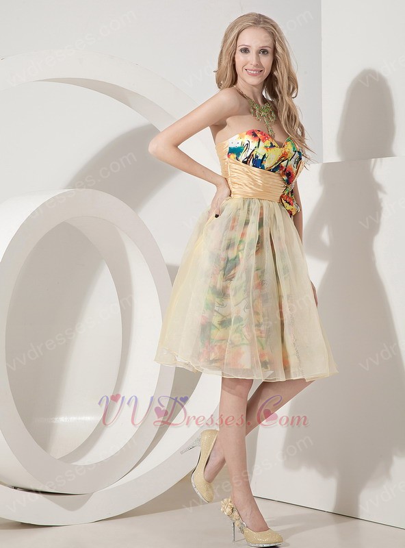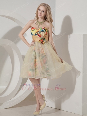 Colorful A-line Sweetheart Bowknot Printed Fabric Short Prom Dress