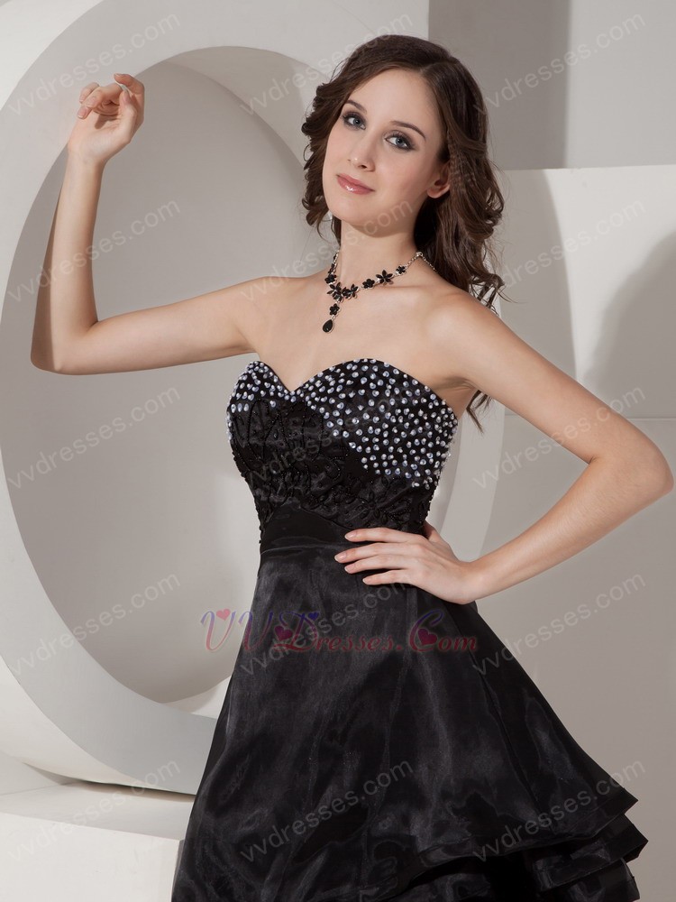Discount Beaded Cascade A-line Black Skirt Short La Prom Dress