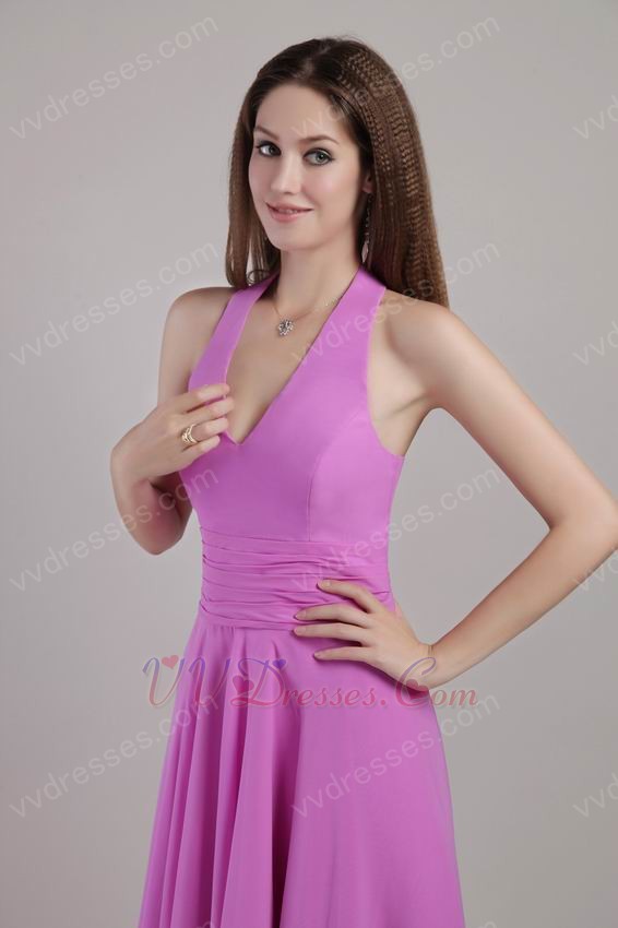 Lilac Halter Top Knee-length Short Chiffon Prom Dress