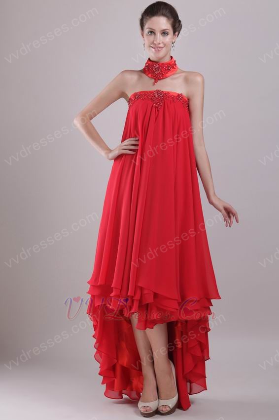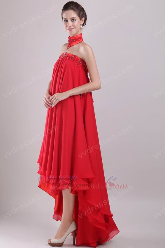 Red Strapless High-low Red Chiffon Embroidery Maternity Prom Dress