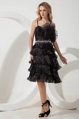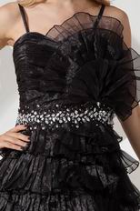Spaghetti Straps Ruffled Layers Black Ice Tulle Evening Dress Short