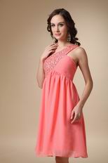 Watermelon Beaded Short Prom Dress With One Shoulder Skirt