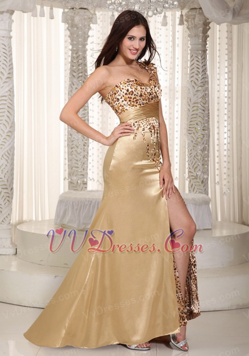 Golden One Shoulder Special Occasion Prom Dress With Leopard Luxury