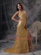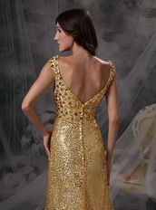 Golden Sequin V-neck Long Skirt With Split Night Club Dress Luxury