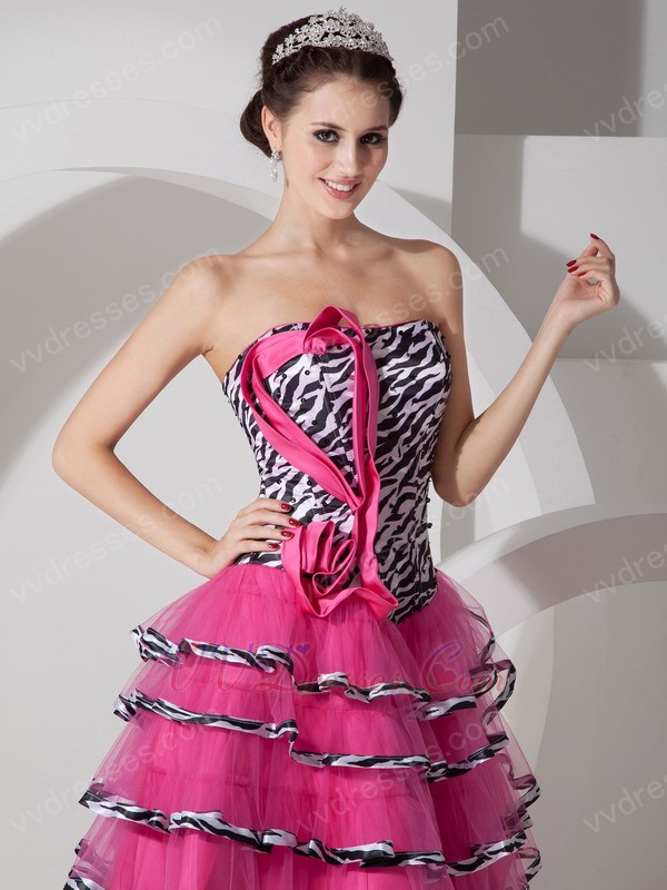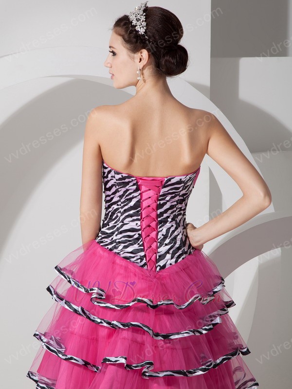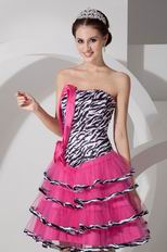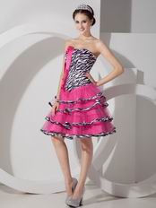 Hot Pink A-line Layers Short Skirt Sweet 16 Dress With Zebra