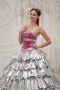 Popular Flare Layers Ruffles Trimed Skirt Silver Quinceanera Dress