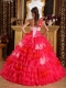 Single Shoulder Sweetheart 2014 Multi-Colored Layer Ruffle Quinceanera Gown