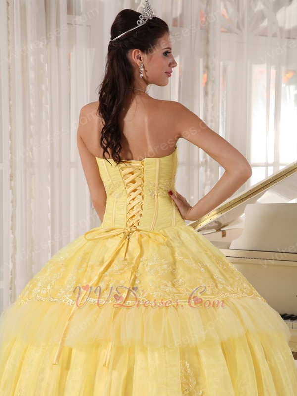 Sweetheart Dark Yellow Quinceanera Dress With Lace Appliques
