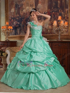 Apple Green Single One Shoulder Ball Dress To Girls Wear