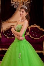 Spring Green Tulle Floor Length Quinceanera Dress By Designer