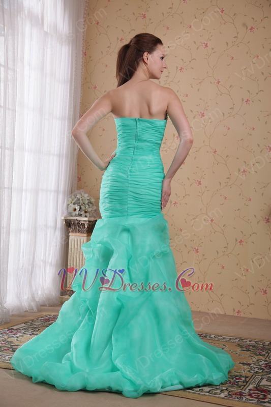 Sweetheart Turquoise Organza Mermaid Prom Dress With Beading