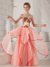Pink Strapless Printed Floor-length Layers Butterfly Prom Dress