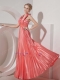 Pleated Halter Floor-length Skirt Watermelon Prom Dress Cheap