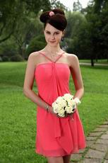 Simple V Hot Pink Chiffon Short Bridesmaid Dress