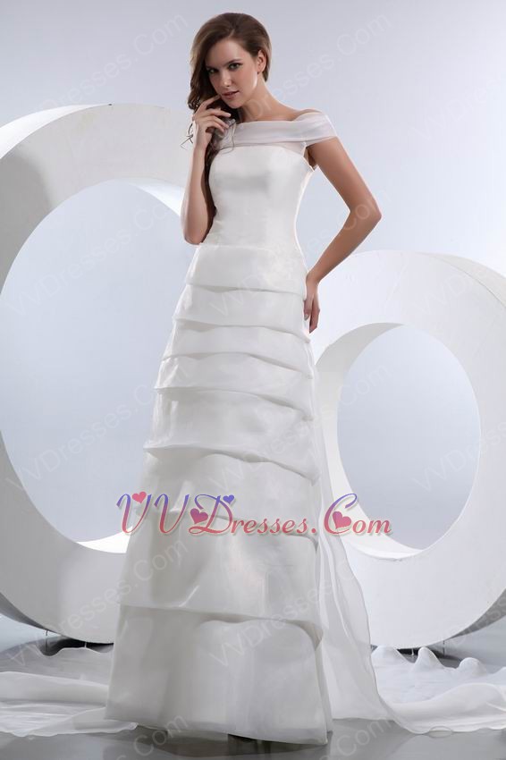 Cheap Flower Off Shoulder Layers Ivory Chapel Custom Wedding Dress