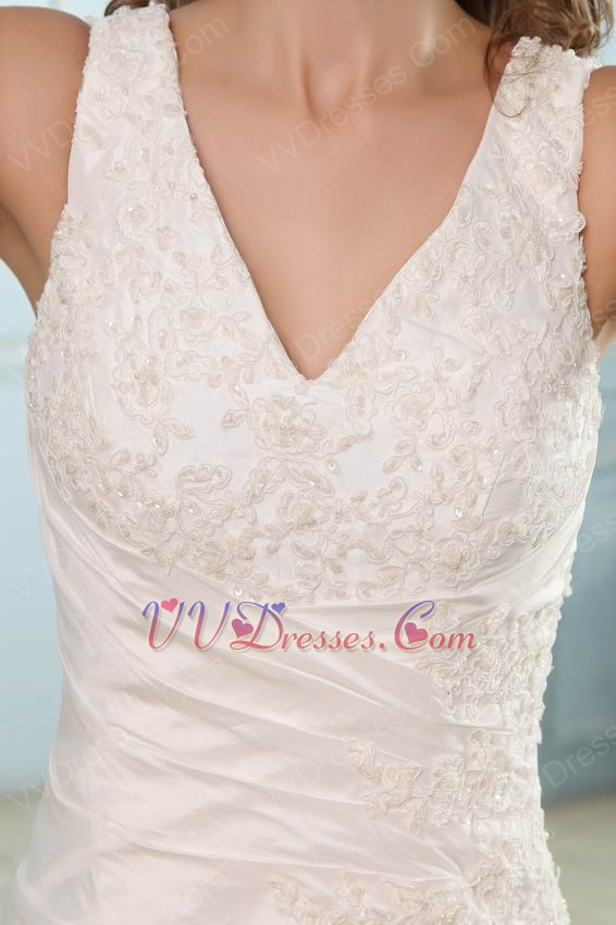 Classic Appliqued V-Neck Chapel Plus Size Wedding Bridal Dress