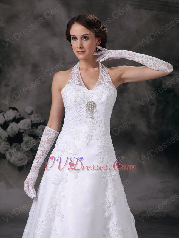 Discount A-line Halter White Wedding Bridal Dress With Applique