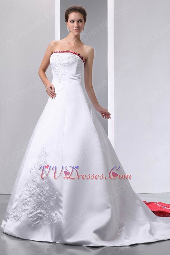 Elegant Strapless Embroidery Empire Wedding Dress With Red Color