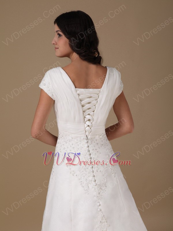 Modest V-neck White Organza Church Wedding Dress Discount