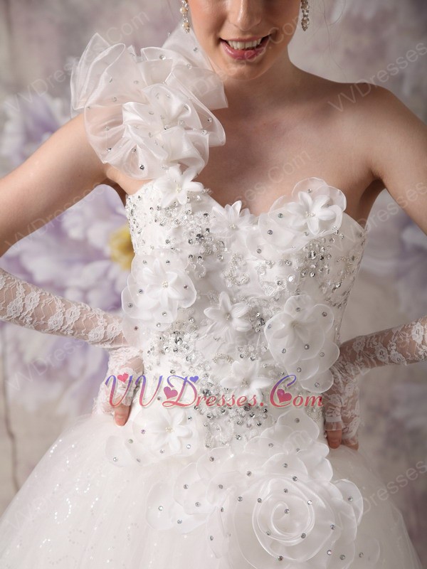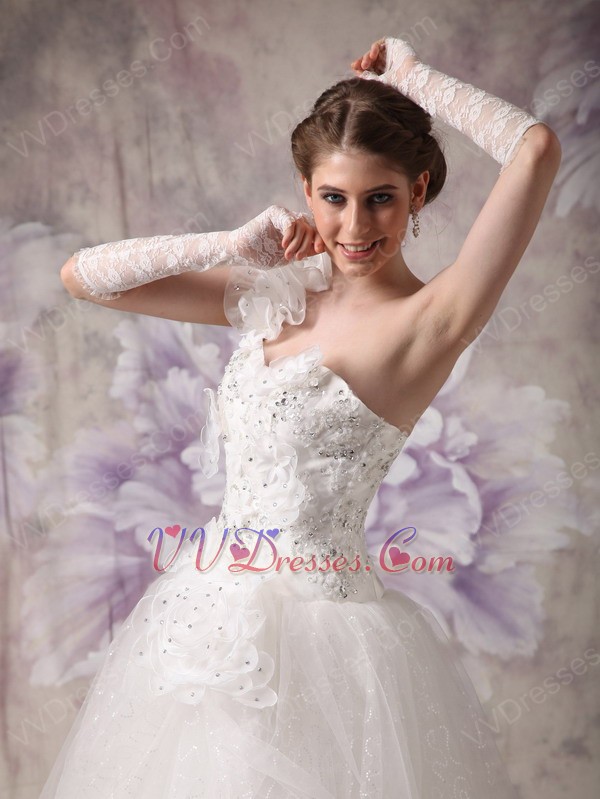 One Shoulder Ivory Organza Floor Length Wedding Dress For Cheap
