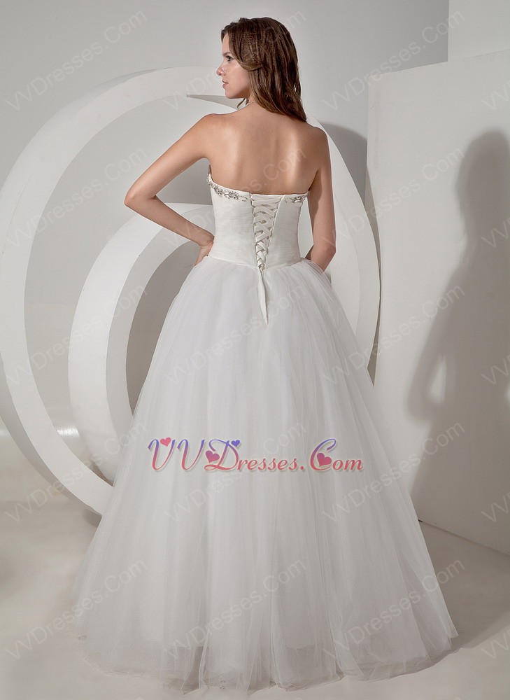 Sweetheart Beaded Bodice Ivory Floor Length Wedding Dress