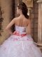 Ruffed White Organza Skirt Quinceanera Dress With Embroidery