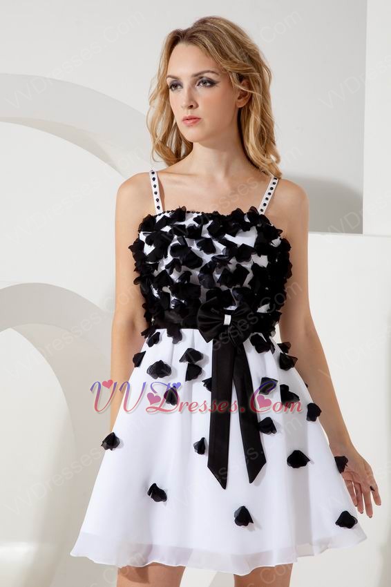 White Organza Girls Choice Sweet 16 Dress With Black Flowers