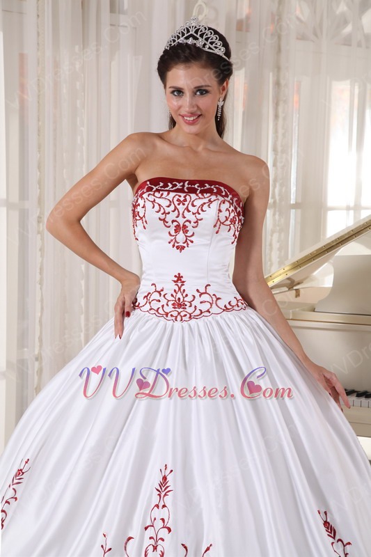 White Quinceanera Dress With Wine Red Embroidery Details