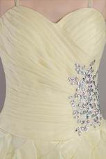 Prom Dress Side Beaded Light Yellow Ruffles Organza Skirt