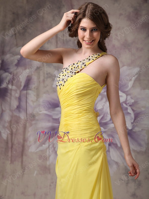 Top Designer 2014 Yellow Dress With One Shoulder Long Skirt